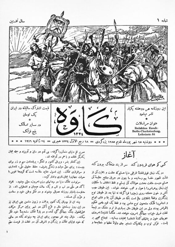 On the third day of Bahman 1294, the first issue of “Rūznāmah-i Kāvah” was published in Berlin, Germany, under the efforts and management of “Ḥasan Taqīʹzādah” and in the Persian language. This magazine was one of the most important sources about antiquarianism in Iran.